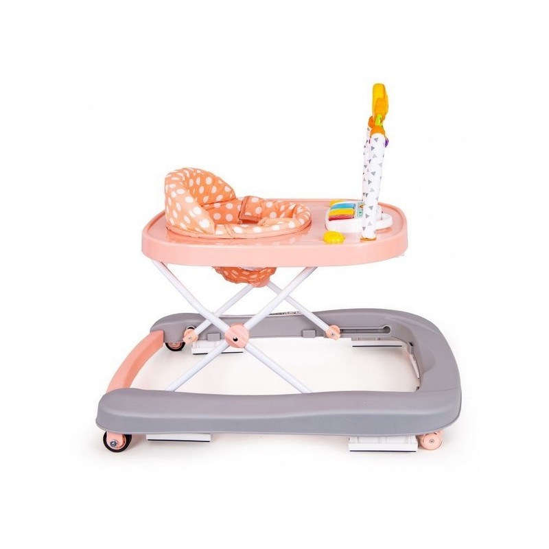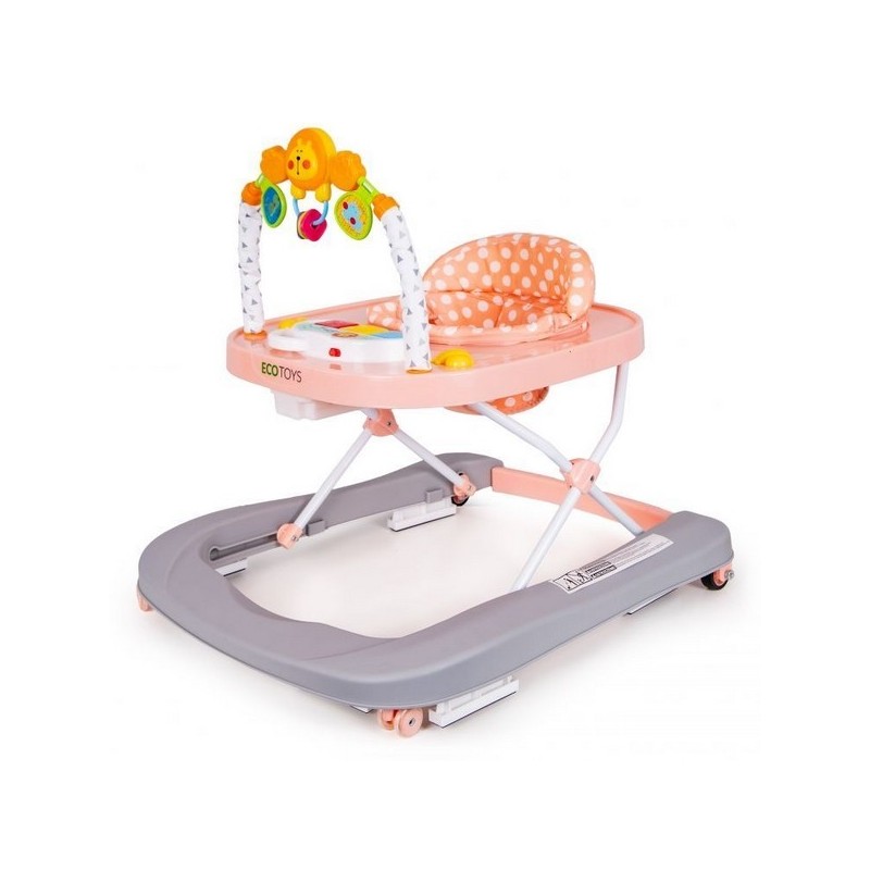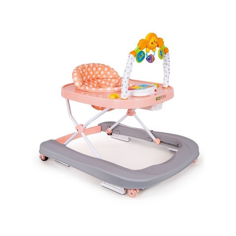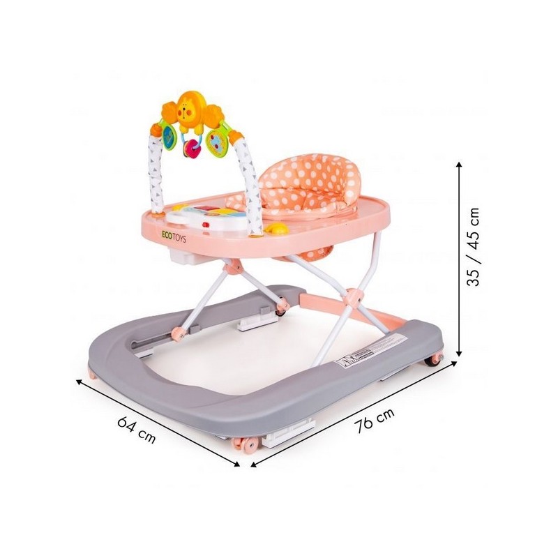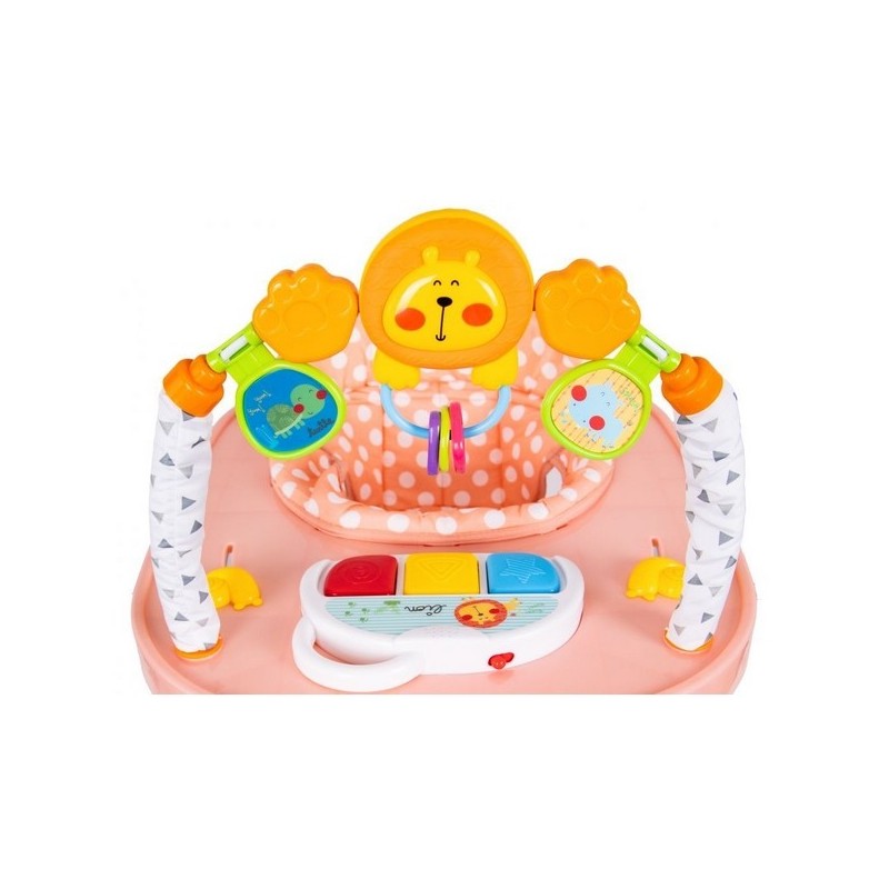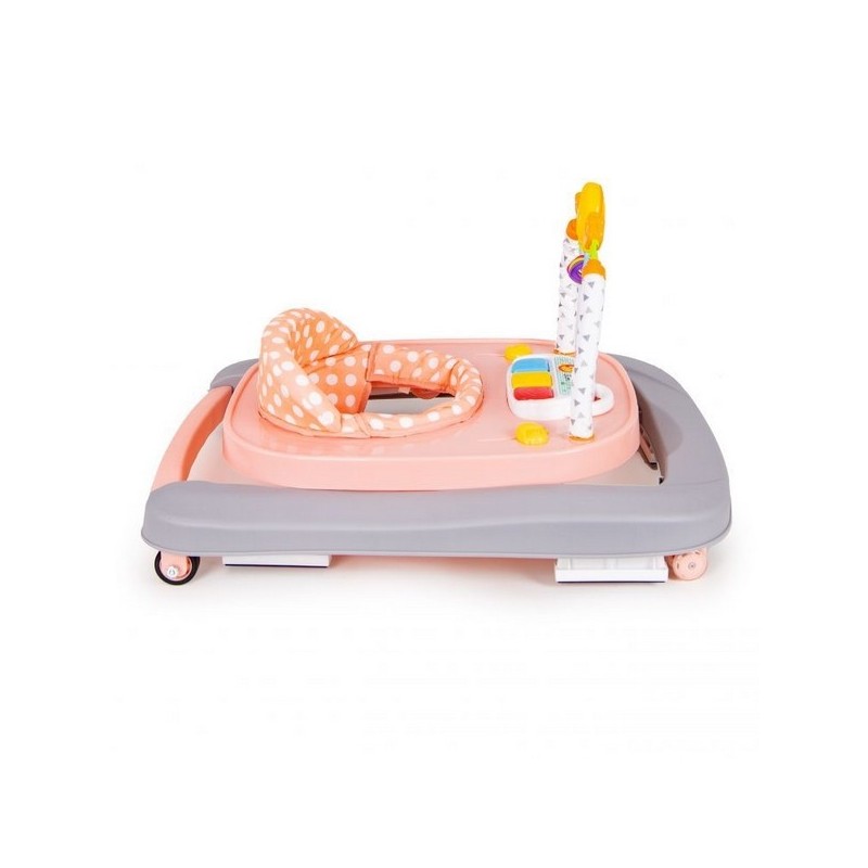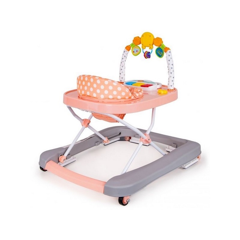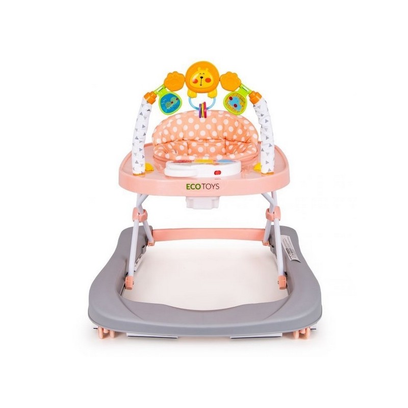 Copilul va gasi multe "atractii" in timpul unei pauze de la invatatul de mers. In partea din fata exista o bara cu jucarii mobile si un panou extensibil cu butoane stralucitoare care activeaza melodii. Culorile pastelate placute vor atrage atentia copilului si il vor impiedica sa paraseasca premergatorul.