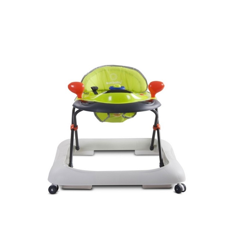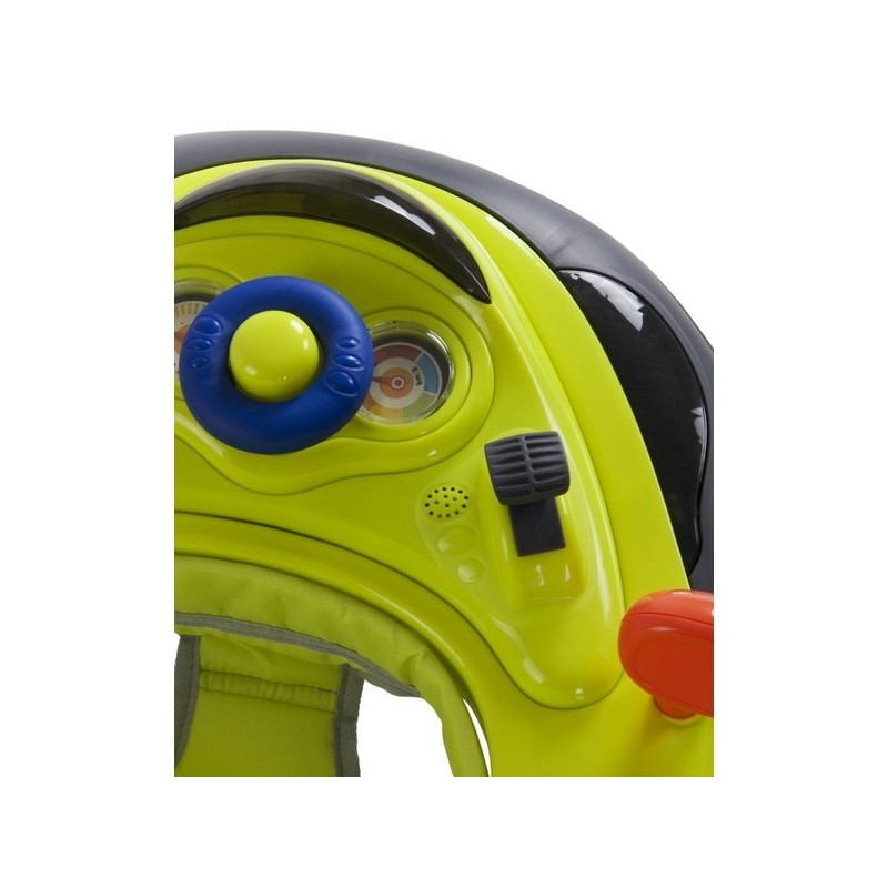 Panoul frontal este dotat cu lumini, volan si oglinzi, pentru a-l stimula suplimentar pe cel mic sa se aventureze in lumea dinamica a deplasarii.