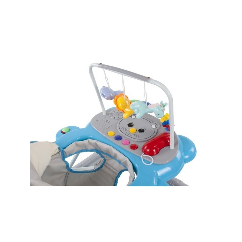 Premergator model pisicuta cu banda colorata pentru jucarii, lumini sclipitoare si sunete diverse.