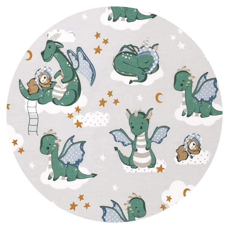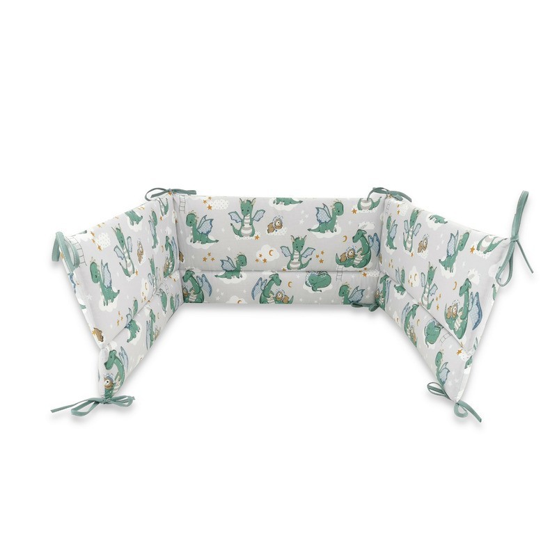 Qmini - Aparatoare pentru patut 120X60 cm Din bumbac certificat Oeko Tex Standard 100 180x30 cm Cu panglici Dragons Beige