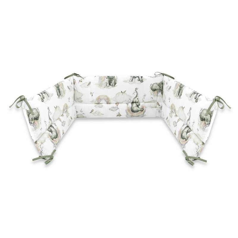 Qmini - Aparatoare pentru patut 120x60 cm Din bumbac certificat Oeko Tex Standard 100 180x30 cm Cu panglici Elephants on Rainbow
