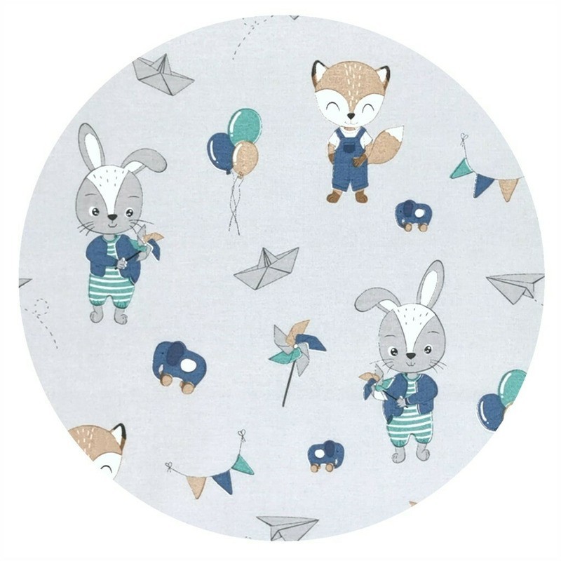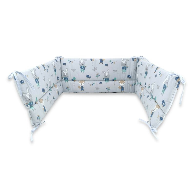 Qmini - Aparatoare pentru patut 120x60 cm Din bumbac certificat Oeko Tex Standard 100 180x30 cm Cu panglici Fox and Rabbit Blue