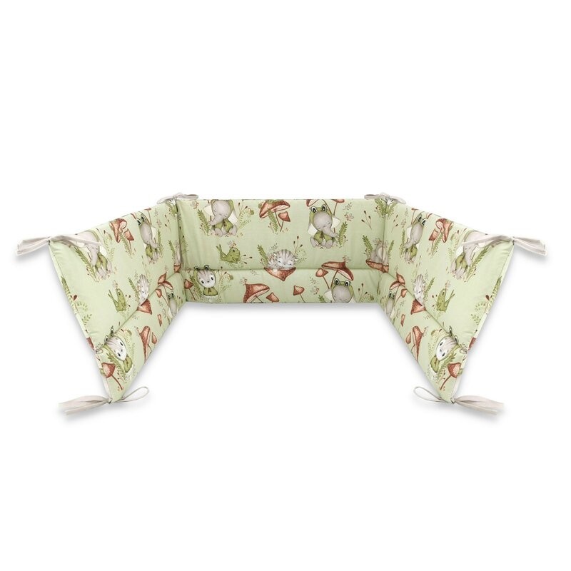 Qmini - Aparatoare pentru patut 120x60 cm Din bumbac certificat Oeko Tex Standard 100 180x30 cm Cu panglici Frogs