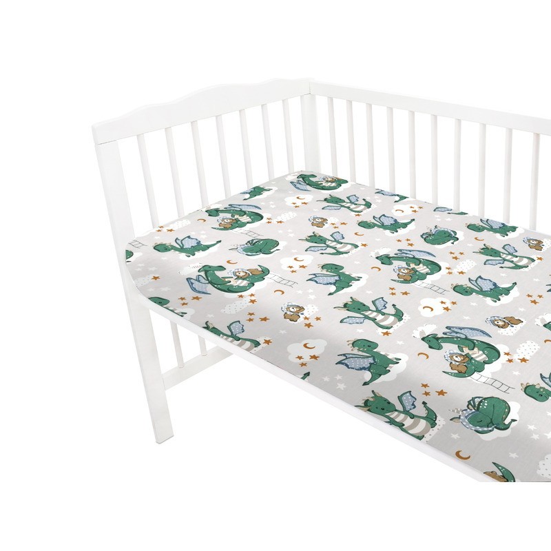 Qmini - Cearceaf cu elastic pentru patut 140X70 cm Din bumbac certificat Oeko Tex Standard 100 Dragons Gray