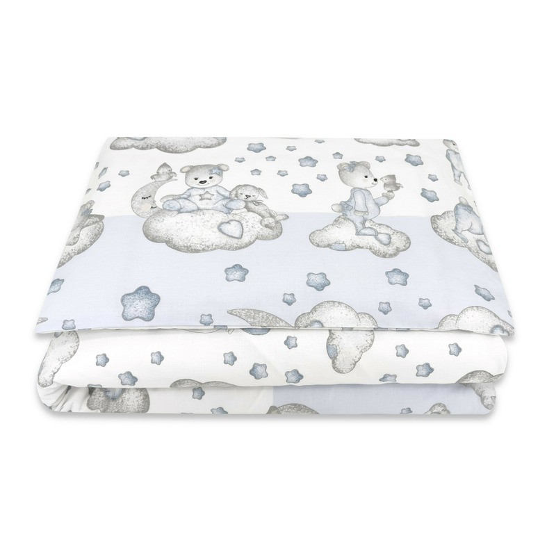 Qmini - Lenjerie junior cu 2 piese Din bumbac certificat Oeko Tex Standard 100 140 x 200 cm Teddy Bear with Blue Heart