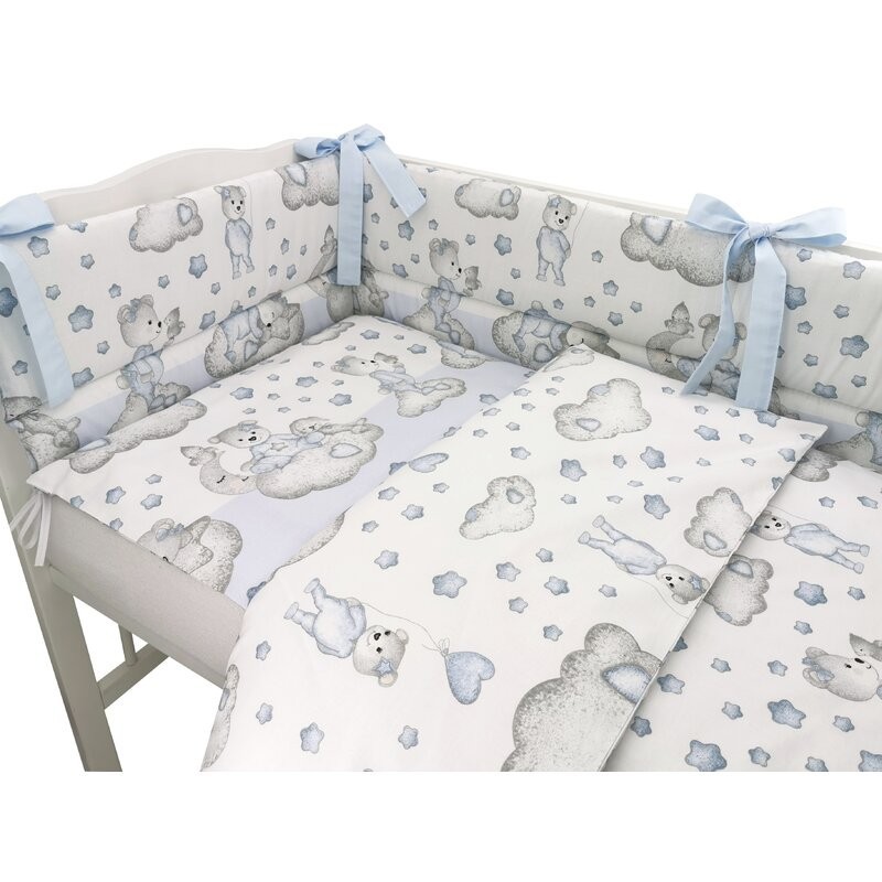 Qmini - Lenjerie patut 3 piese Cu protectie laterala Din bumbac certificat Oeko Tex Standard 100 Pentru patut 120x60 cm Teddy Be