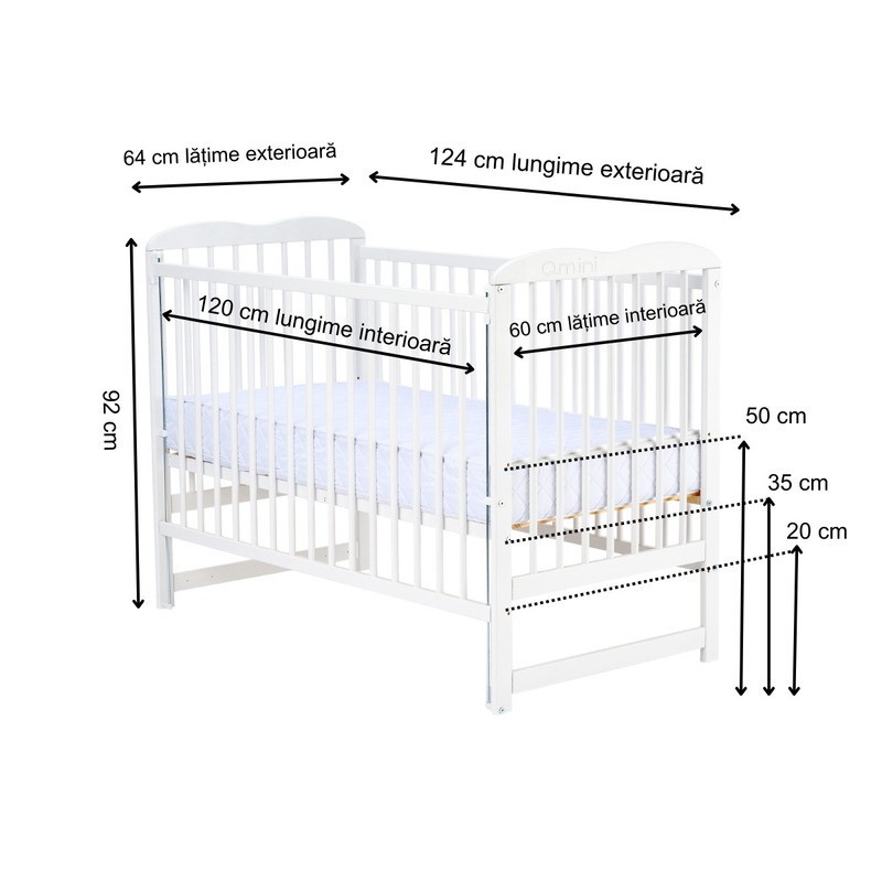 - Nivelul inferior - inaltimea suportului de saltea - 20 cm se foloseste din momentul in care bebelusul se ridica in picioare.