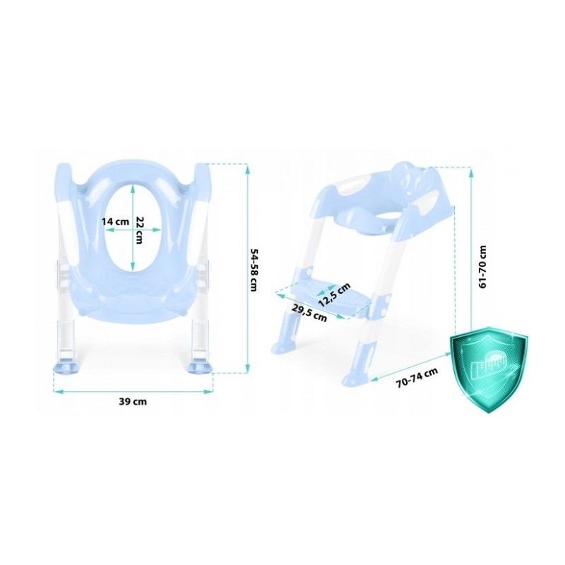 Datorita designului sau ergonomic, este confortabil si adaptat formei coloanei vertebrale a copilului, iar inaltimea sa este reglabila, astfel incat se potriveste practic tuturor modelelor de scaune de toaleta.