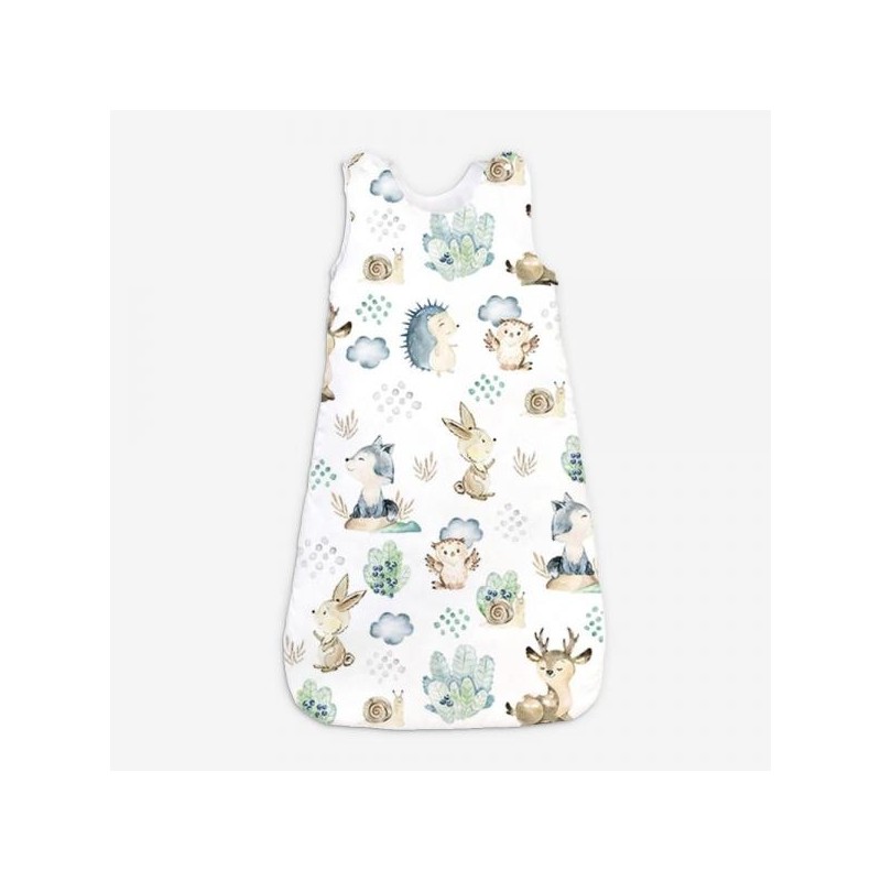 Sacul de dormit are imprimeu pe o parte si bumbac monocolor pe cealalta. Imprimeul pe stofe este un imprimeu ecologic, sigur pentru cei mici.