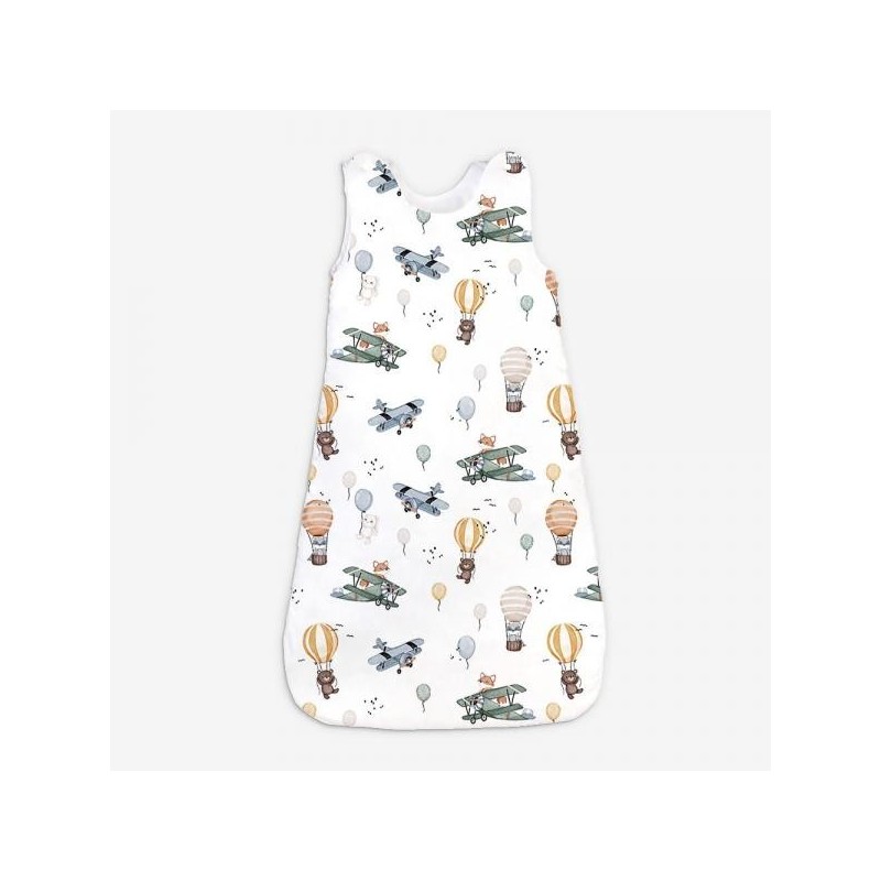 Sacul de dormit are imprimeu pe o parte si bumbac monocolor pe cealalta. Imprimeul pe stofe este un imprimeu ecologic, sigur pentru cei mici.