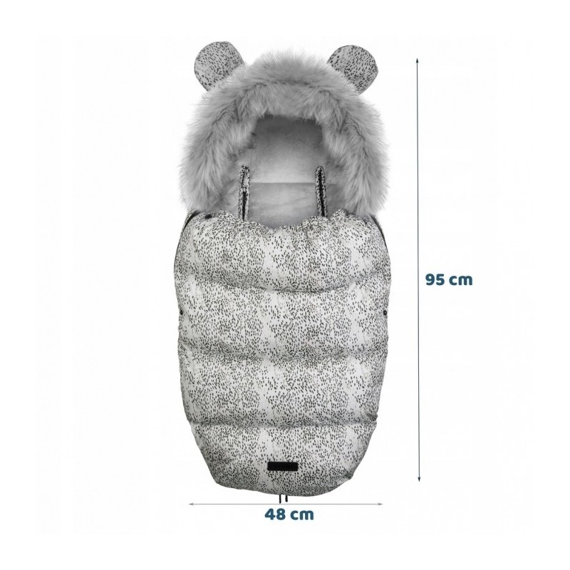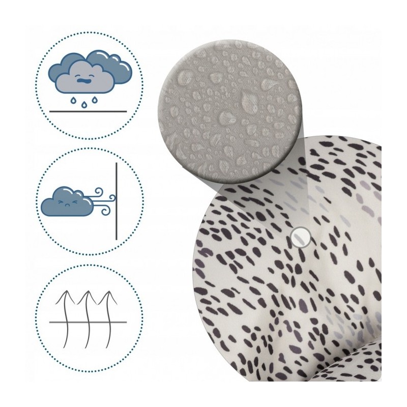 Saculet cu 3 straturi, de inalta calitate: un strat superior care garanteaza impermeabilitatea si rezistenta la vant, stratul mijlociu umplut cu material cald, puf, antialergic, iar stratul interior conceput pentru a asigura un drenaj adecvat al umiditatii si pentru a mentine temperatura corecta.