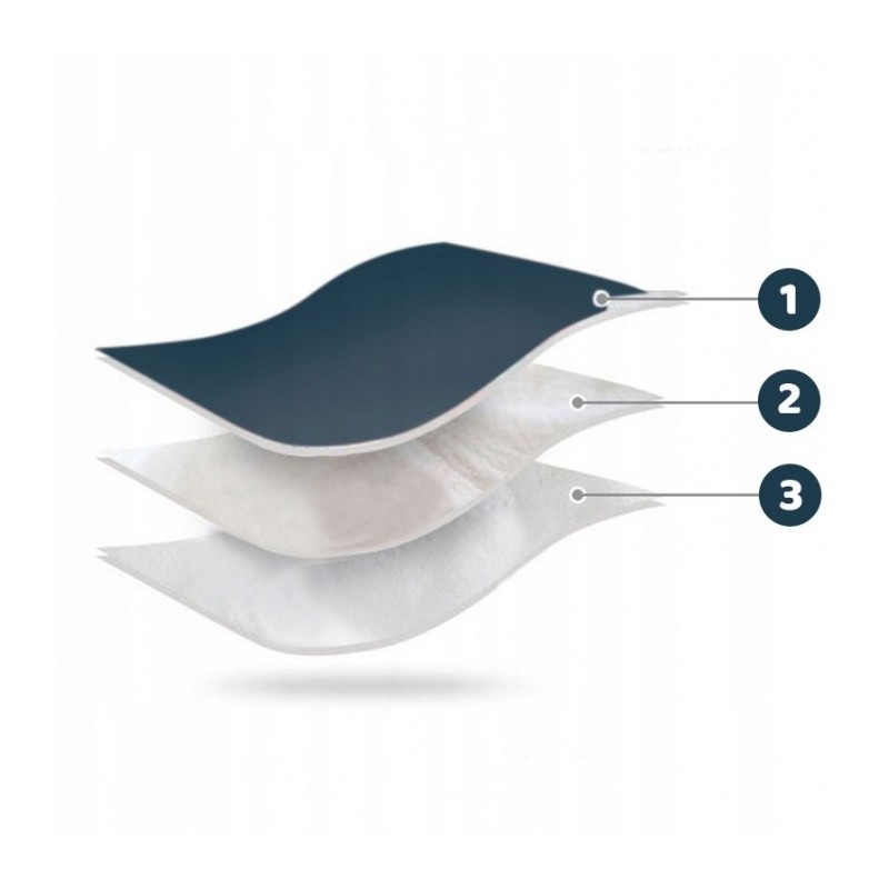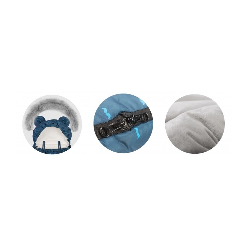 Saculet cu 3 straturi, de inalta calitate: un strat superior care garanteaza impermeabilitatea si rezistenta la vant, stratul mijlociu umplut cu material cald, puf, antialergic, iar stratul interior conceput pentru a asigura un drenaj adecvat al umiditatii si pentru a mentine temperatura corecta.