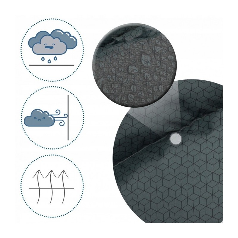 Saculet cu 3 straturi, de inalta calitate: un strat superior care garanteaza impermeabilitatea si rezistenta la vant, stratul mijlociu umplut cu material cald, puf, antialergic, iar stratul interior conceput pentru a asigura un drenaj adecvat al umiditatii si pentru a mentine temperatura corecta.