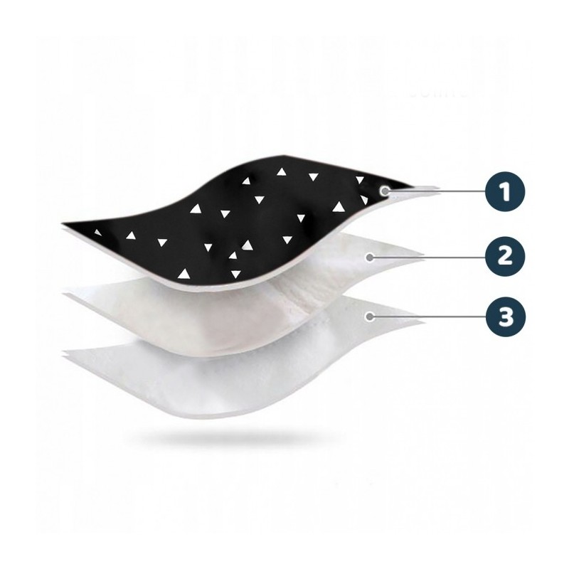 Saculet cu 3 straturi, de inalta calitate: un strat superior care garanteaza impermeabilitatea si rezistenta la vant, stratul mijlociu umplut cu material cald, puf, antialergic, iar stratul interior conceput pentru a asigura un drenaj adecvat al umiditatii si pentru a mentine temperatura corecta.