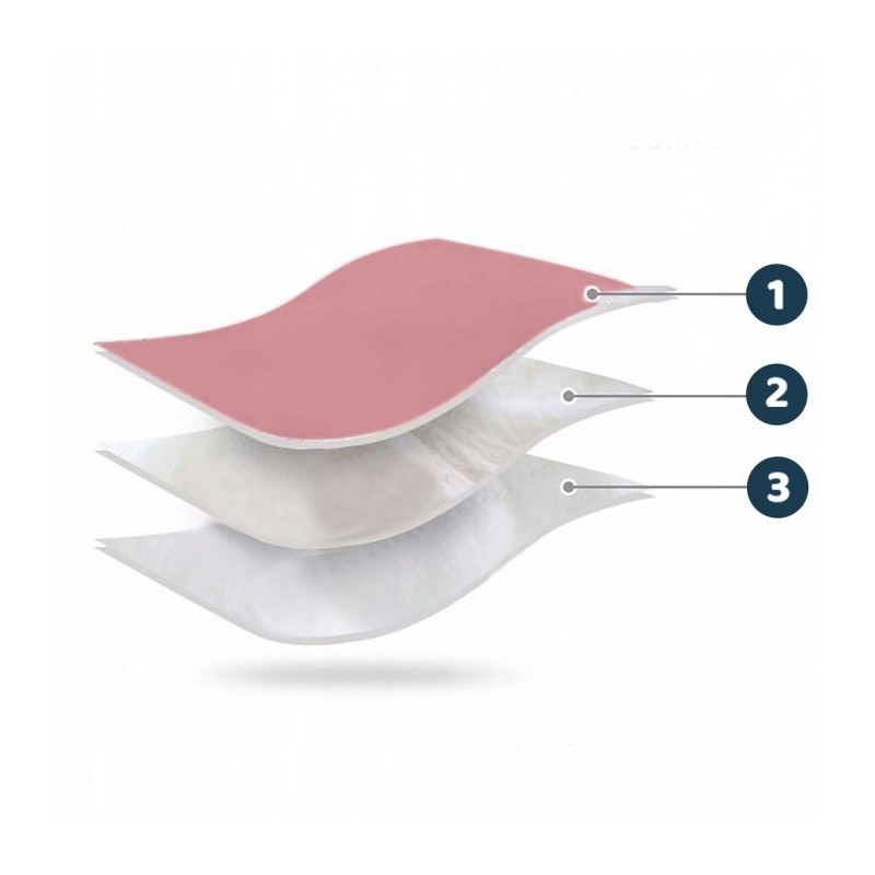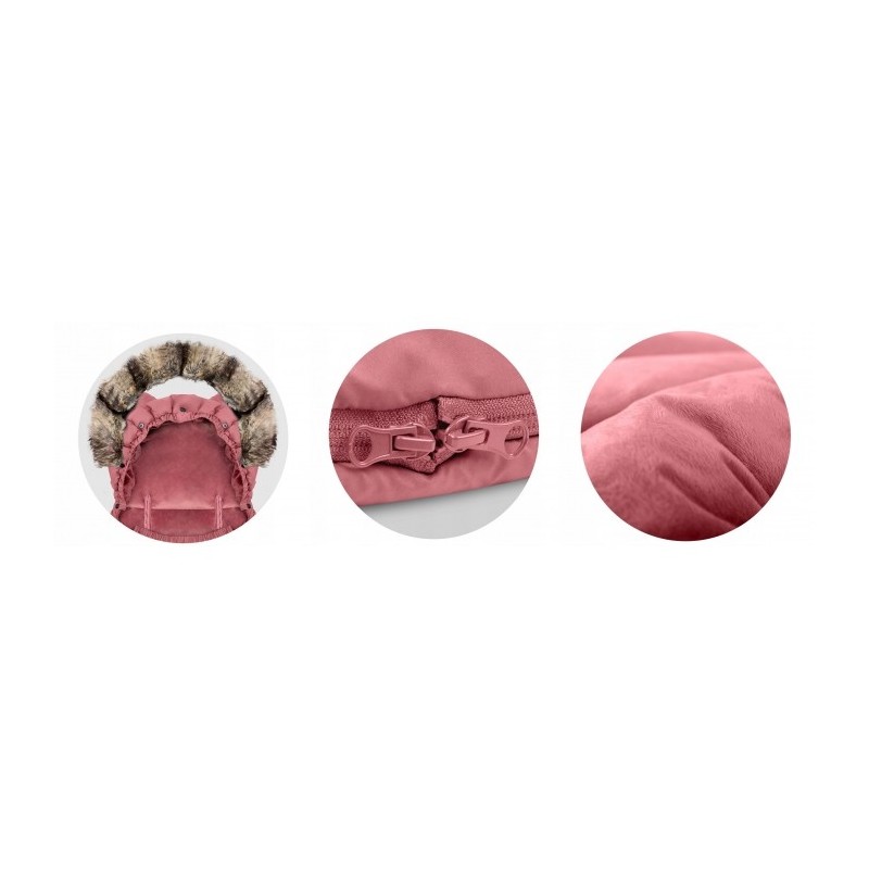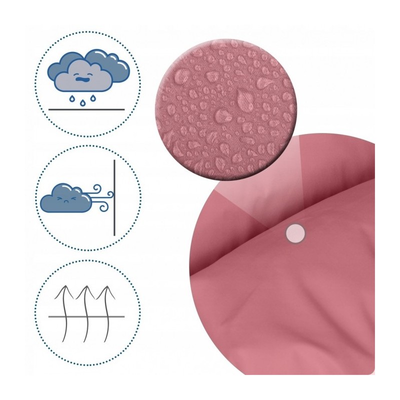 Saculet cu 3 straturi, de inalta calitate: un strat superior care garanteaza impermeabilitatea si rezistenta la vant, stratul mijlociu umplut cu material cald, puf, antialergic, iar stratul interior conceput pentru a asigura un drenaj adecvat al umiditatii si pentru a mentine temperatura corecta.