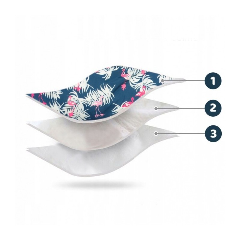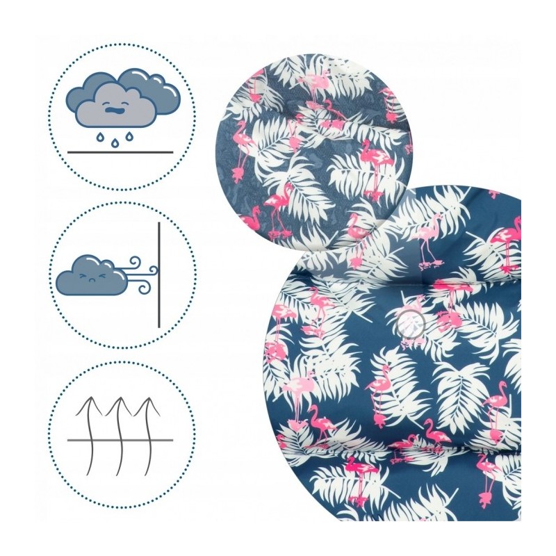 Saculet cu 3 straturi, de inalta calitate: un strat superior care garanteaza impermeabilitatea si rezistenta la vant, stratul mijlociu umplut cu material cald, puf, antialergic, iar stratul interior conceput pentru a asigura un drenaj adecvat al umiditatii si pentru a mentine temperatura corecta.