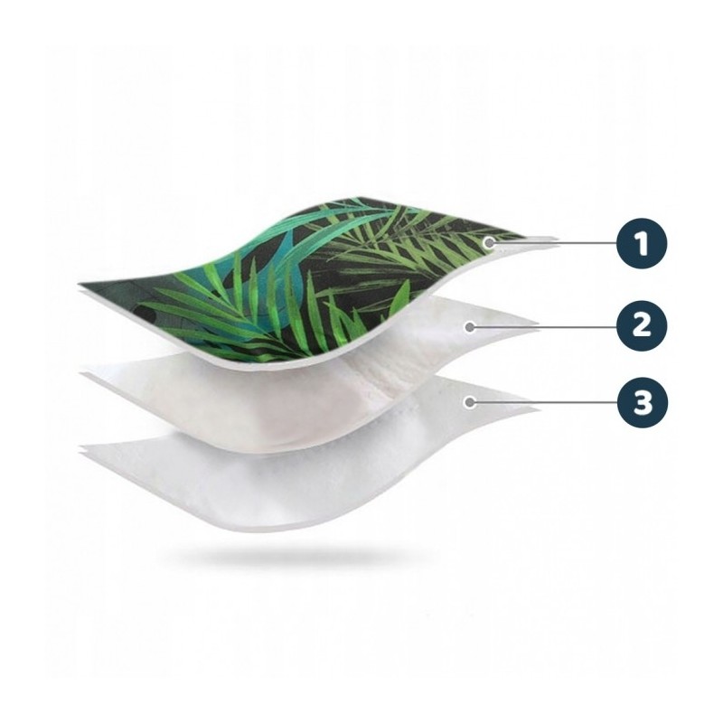 Saculet cu 3 straturi, de inalta calitate: un strat superior care garanteaza impermeabilitatea si rezistenta la vant, stratul mijlociu umplut cu material cald, puf, antialergic, iar stratul interior conceput pentru a asigura un drenaj adecvat al umiditatii si pentru a mentine temperatura corecta.