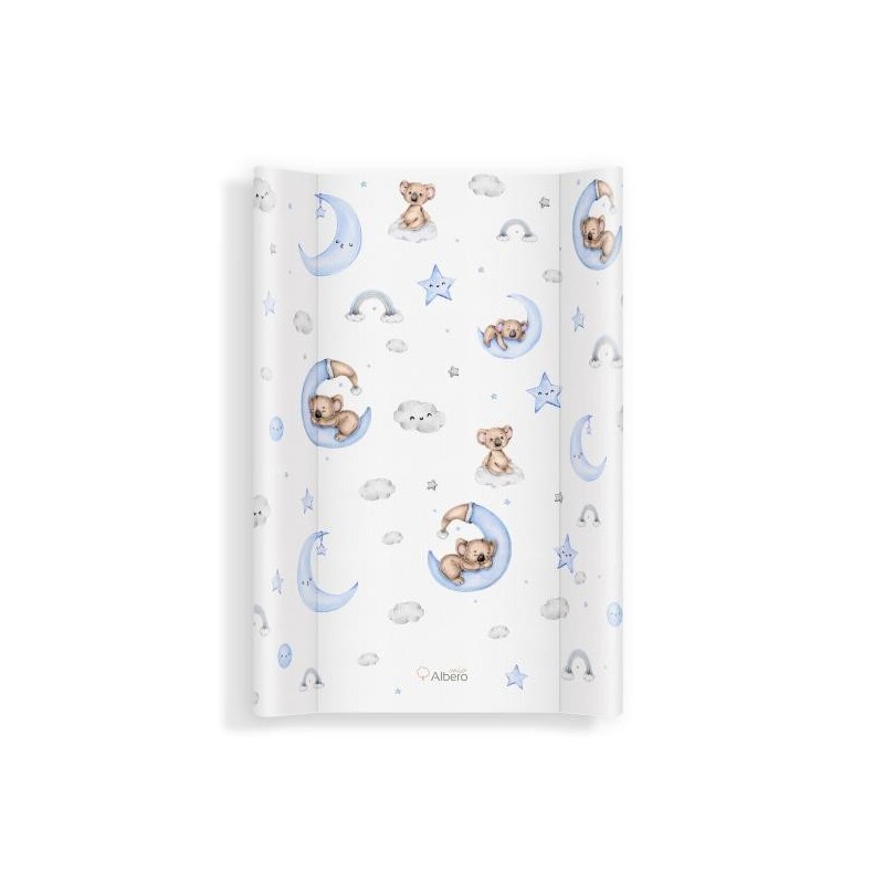 Este acoperita cu o folie care este sigura pentru pielea copilului si nu contine ftalati.
