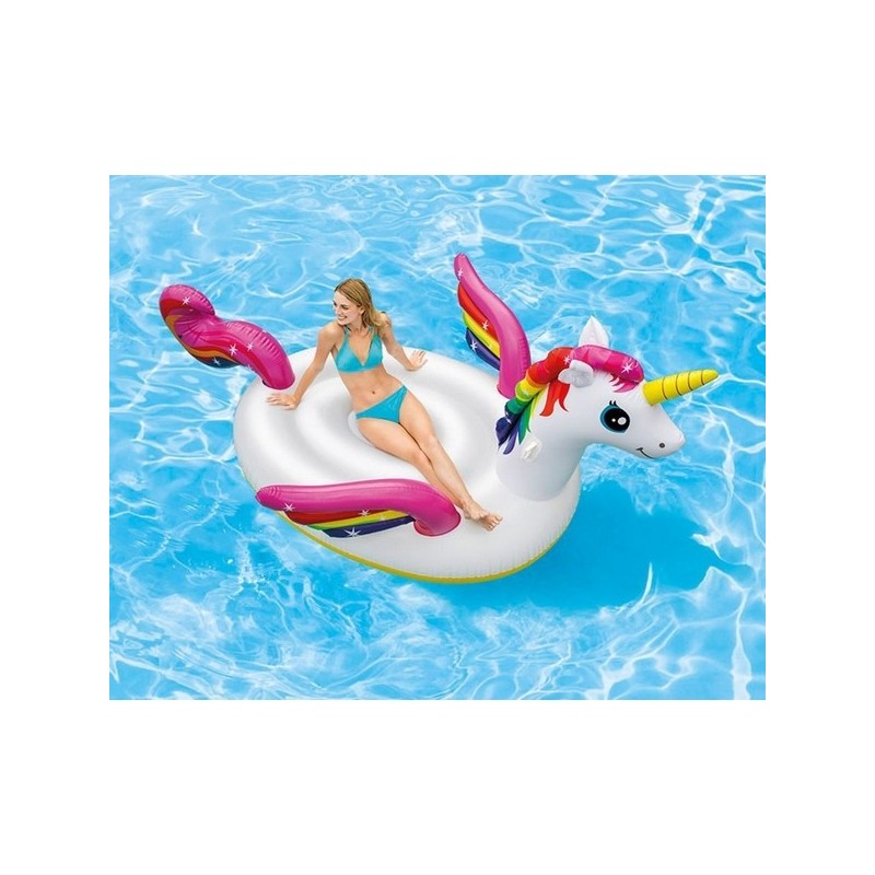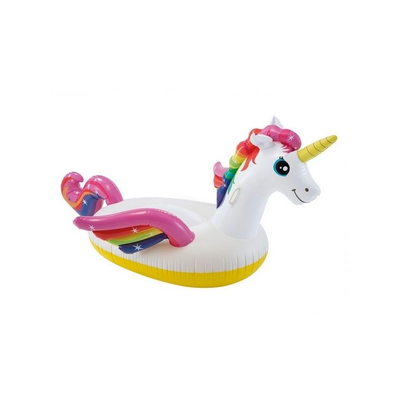 Salteaua în formă de unicorn este formată din două camere de aer, datorită cărora se menține ușor stabilitatea pe apă. Salteaua este realizată din material PVC de înaltă calitate, cu o grosime de 0,35 mm. Păunul gonflabil reprezintă o atracție nu numai pentru copii, ci și pentru adulți.