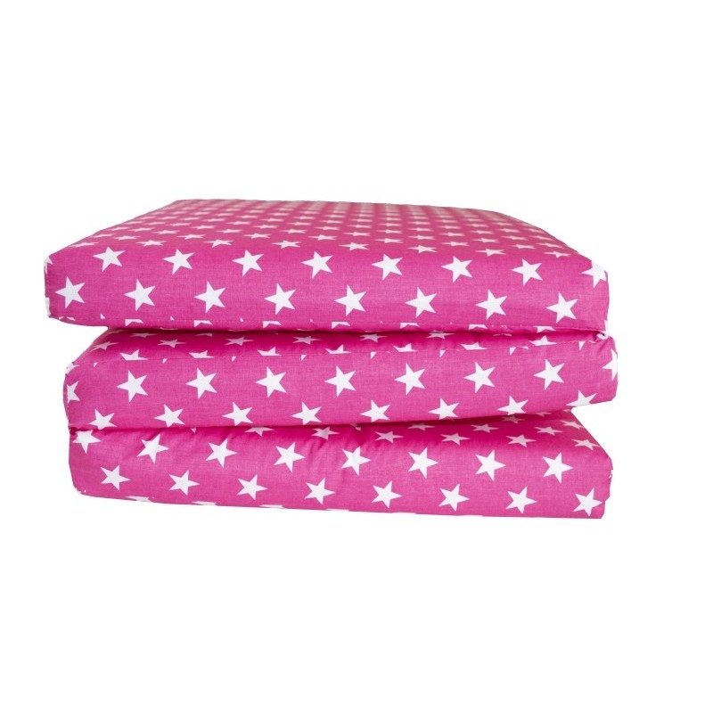 Salteaua este confectionata din spuma poliuretanica (burete) si este prevazuta cu o husa detasabila 100% din bumbac, fapt care va ajuta copilul sa nu transpire, sa se simta relaxat si sa nu dezvolte alergii. Aceasta il va ajuta pe cel mic sa se poata relaxa sau odihni in orice pozitie. Poate fi pliata cu usurinta si utilizata atat acasa, cat si in calatorii sau excursii.