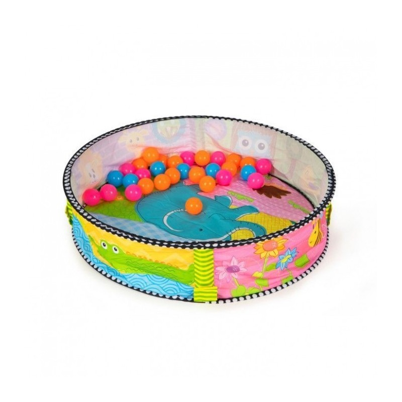 Versiunea pentru copiii care pot deja sa se aseze independent, 30 de bile colorate vor servi drept completare perfecta a jocului, care vor dezvolta abilitatile motorii ale copilului si, in acelasi timp, vor invata sa distinga culorile.