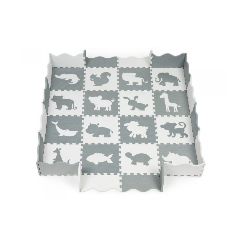 O salteluta din spuma moale EVA este perfecta pentru copiii mici care invata sa mearga. O salteluta din spuma de 1.2 cm grosime realizata din puzzle-uri cu animalute va oferi izolare de la sol si va actiona, de asemenea, ca o piscina uscata care poate fi umpluta cu bile din plastic sau alte jucarii. Setul este format din 36 piese de puzzle-uri patrate mari si colorate care se conecteaza intre ele si pot forma chiar si un perete.