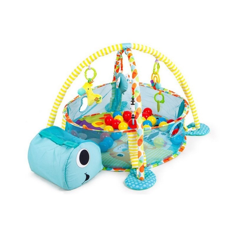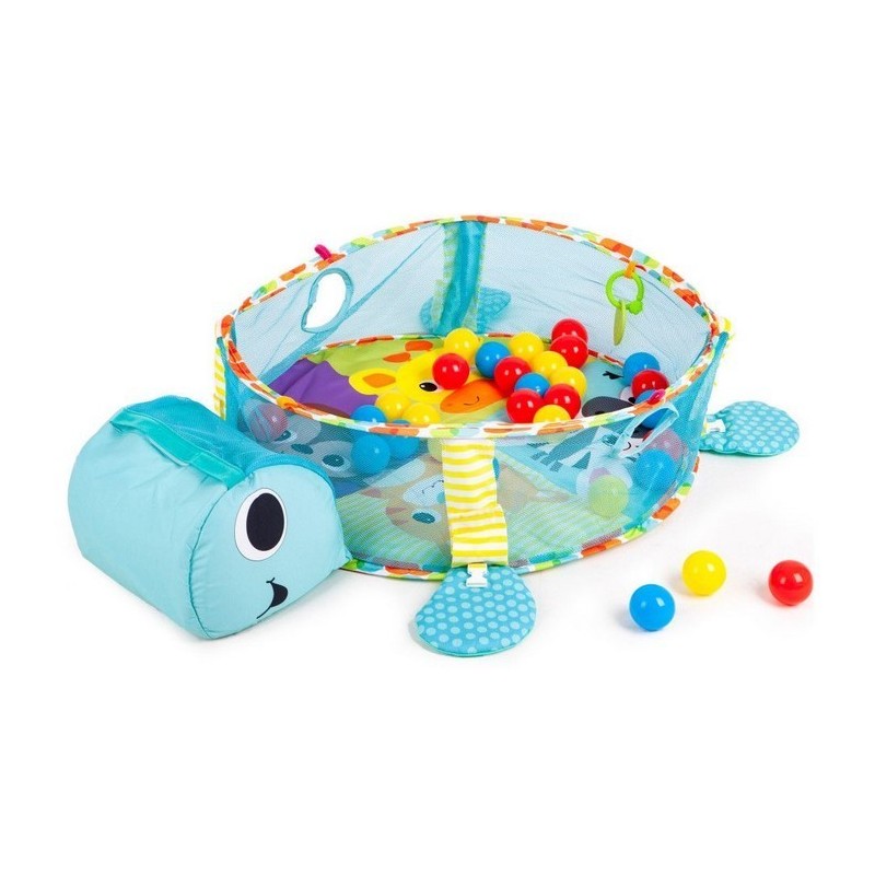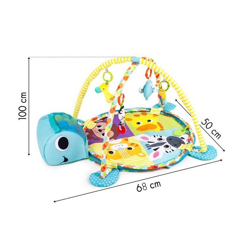 Salteluta in forma de broscuta testoasa este 3 in 1 – o saltea educationala, o piscina cu bile, un parc de joaca. Datorita acestui fapt, puteti adapta salteaua la stadiul de dezvoltare si la preferintele copilului dvs.