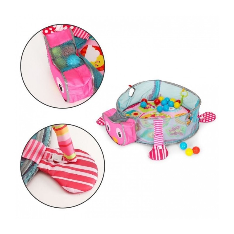 Salteluta in forma de bufnita este 3 in 1 – o saltea educationala, o piscina cu bile, un parc de joaca. Datorita acestui fapt, puteti adapta salteaua la stadiul de dezvoltare si la preferintele copilului dvs.