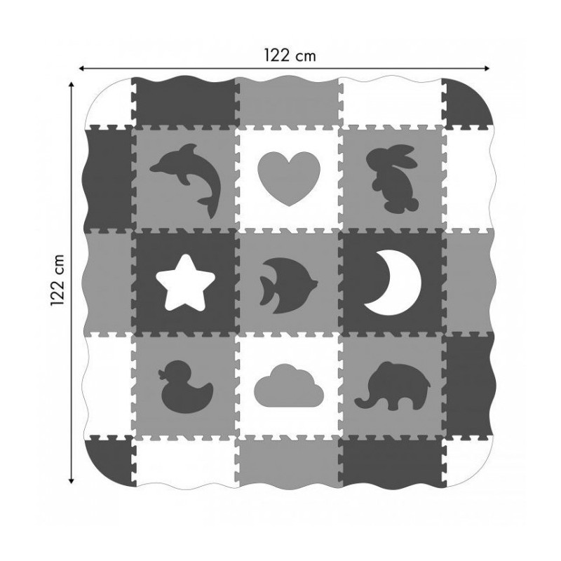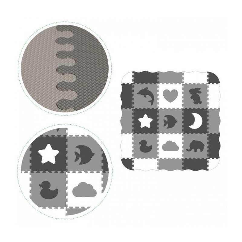 O salteluta din spuma moale EVA este perfecta pentru copiii mici care invata sa mearga. O salteluta din spuma de 1.3 cm grosime realizata din puzzle-uri cu imagini cu animale va oferi izolare de la sol si va actiona, de asemenea, ca o piscina uscata care poate fi umpluta cu bile din plastic sau alte jucarii. Setul este format din 25 piese de puzzle-uri patrate mari si colorate care se conecteaza intre ele si pot forma chiar si un perete.