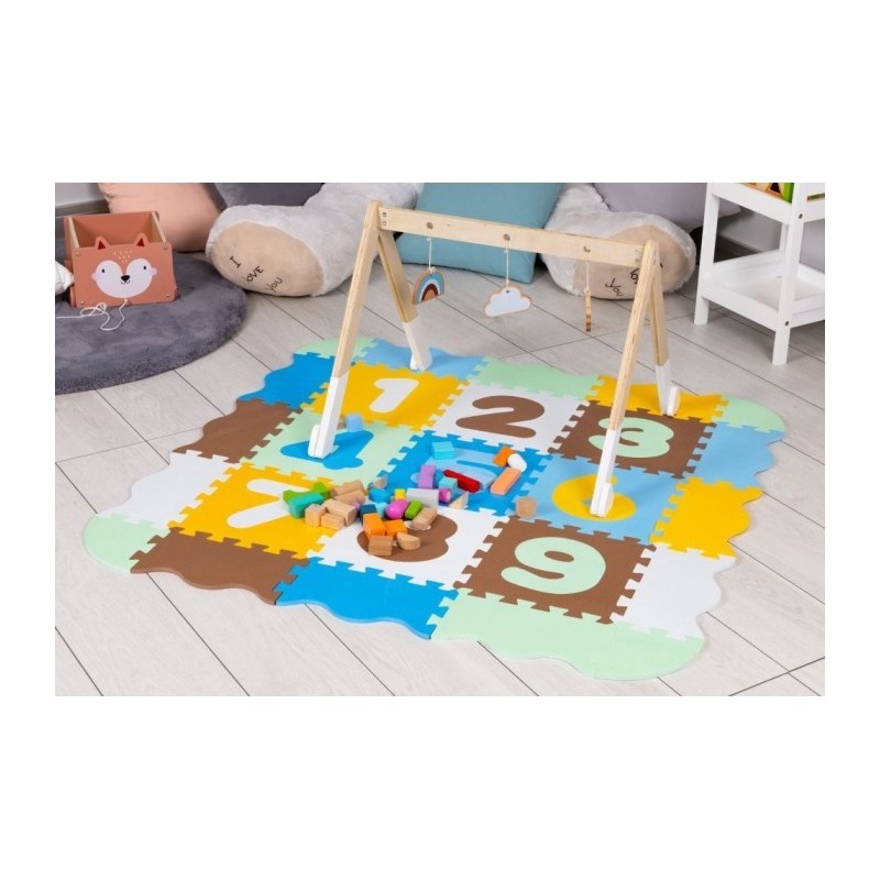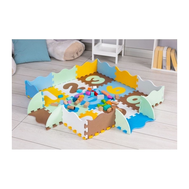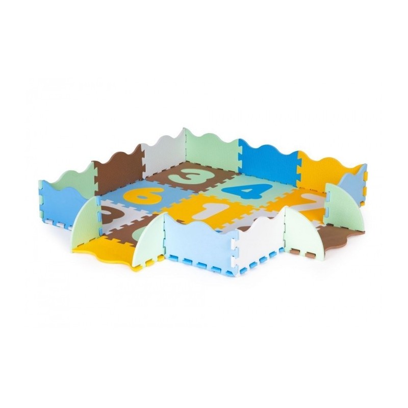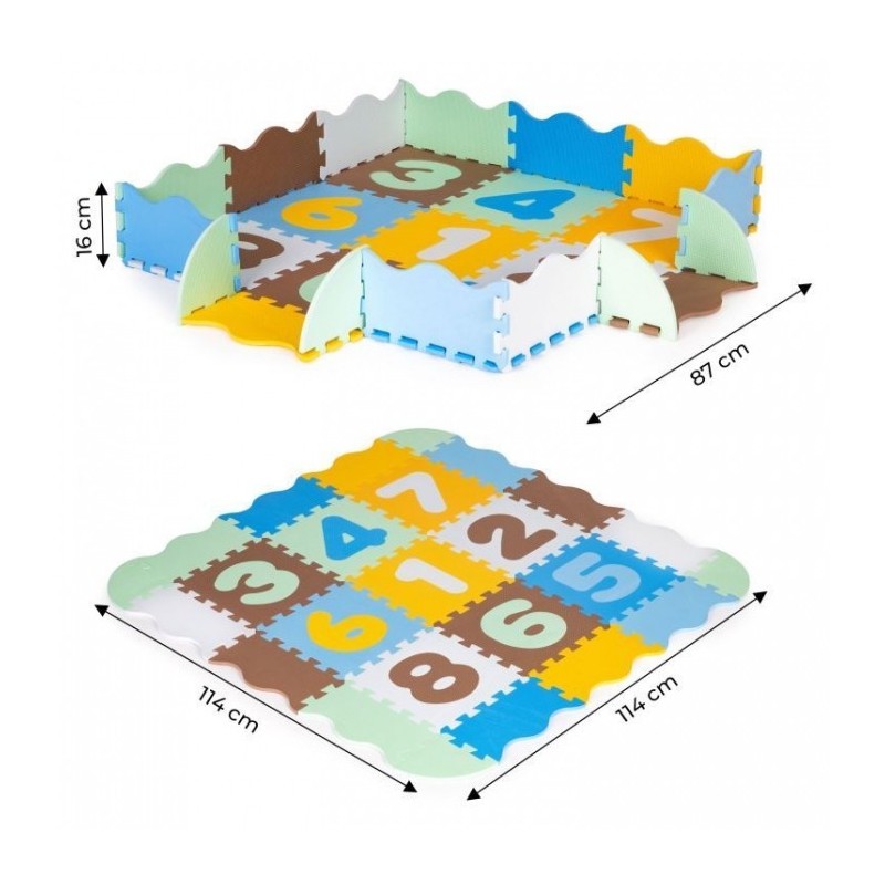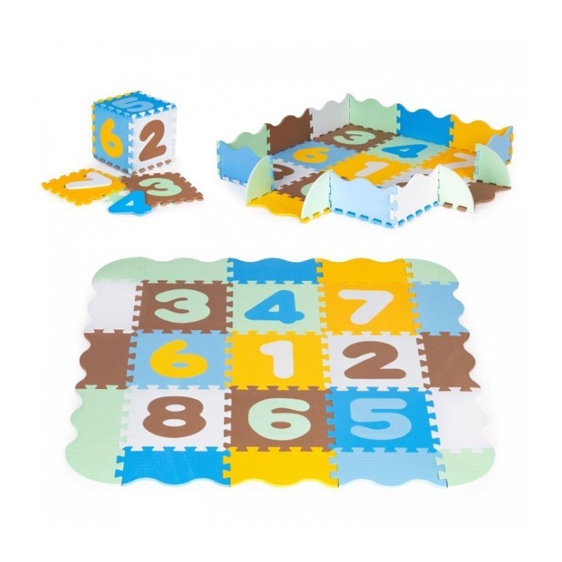 O salteluta din spuma moale EVA este perfecta pentru copiii mici care invata sa mearga. O salteluta din spuma de 1 cm grosime realizata din puzzle-uri cu cifre va oferi izolare de la sol si va actiona, de asemenea, ca o piscina uscata care poate fi umpluta cu bile din plastic sau alte jucarii. Setul este format din 25 piese de puzzle-uri patrate mari si colorate care se conecteaza intre ele si pot forma chiar si un perete.