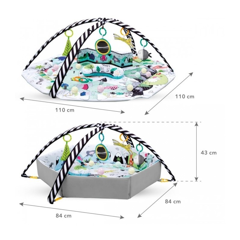 Cu laturile ridicate – este un loc de joaca sigur + loc de odihna + formeaza o piscina privata cu bile;