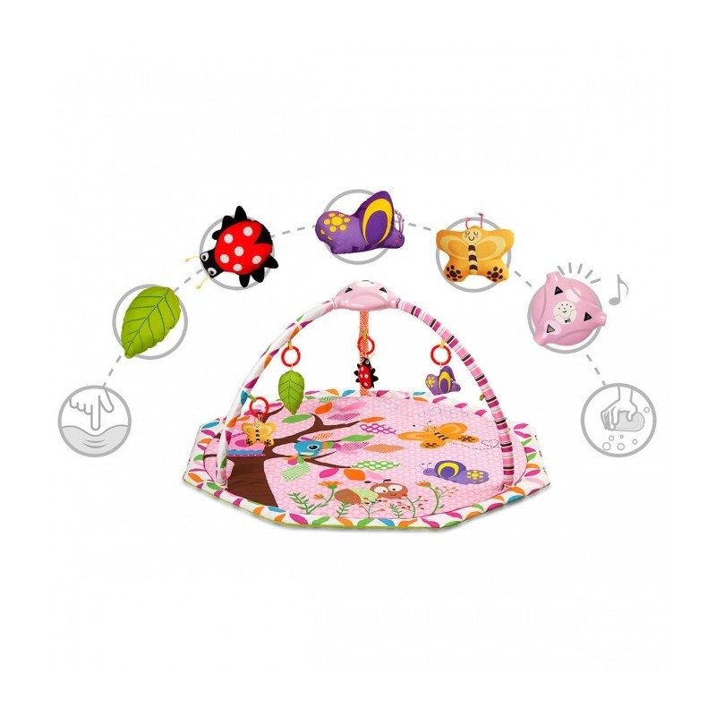 Salteluta de joaca Kidwell NIBA cu o cutiuta muzicala si jucarii atasate arcurilor creeaza un loc de joaca sigur, acasa. Aceasta ii va oferi copilasului o dezvoltare motorie activa si bucuria de a descoperi noi stimuli. Un loc ideal pentru joaca si relaxare.