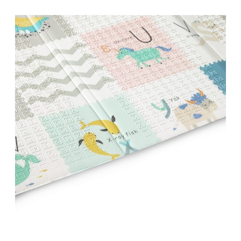 Salteluta de joaca este confectionata dintr-o spuma moale multifunctionala, care se pliaza la o dimensiune compacta. Poate sa tina locul chiar si unui covoras din camera copilului.