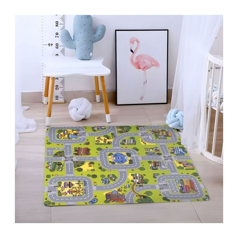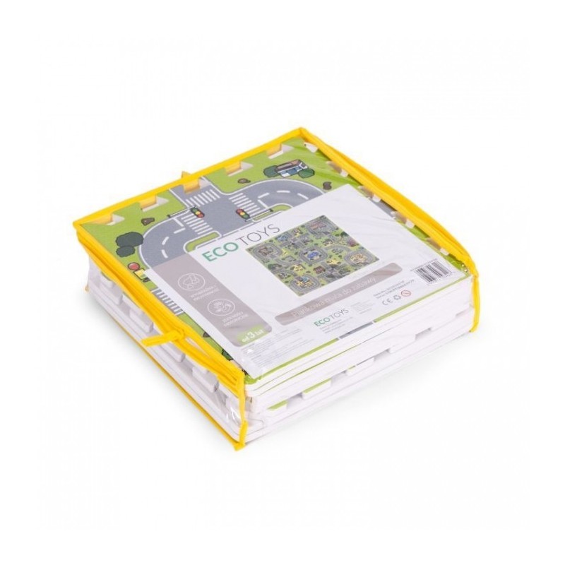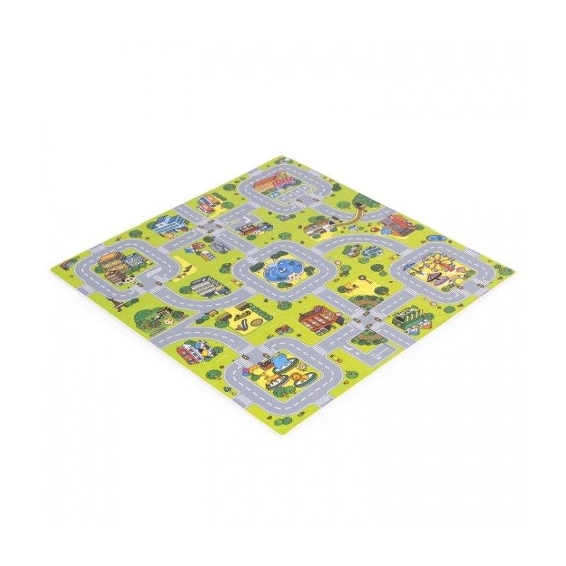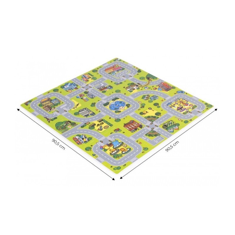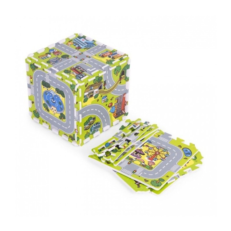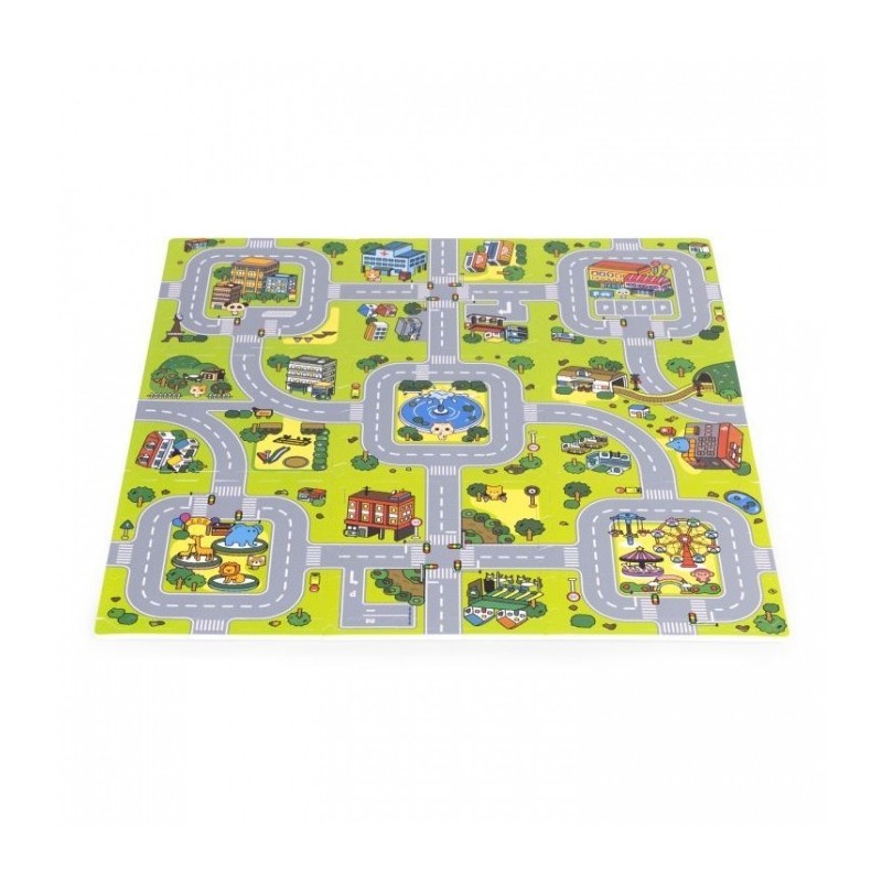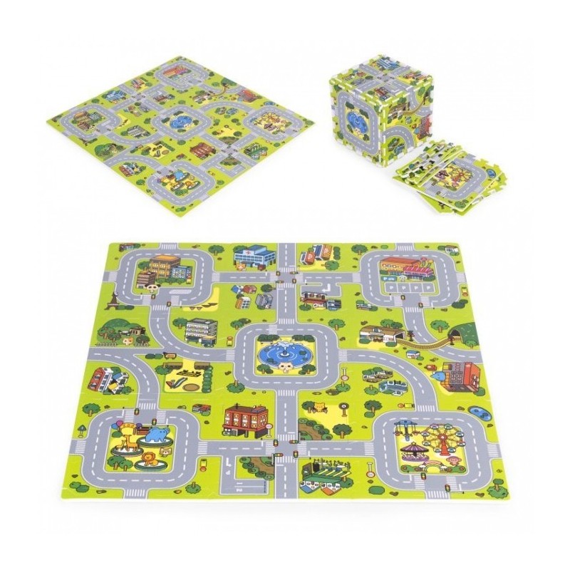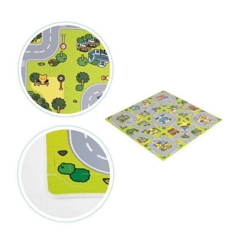 O salteluta din spuma moale EVA este perfecta pentru copiii mici care invata sa mearga. Fabricata din spuma EVA de inalta calitate, ofera o suprafata de joaca moale si sigura. Salteluta este formata din 21 de elemente care, atunci cand sunt aranjate, creeaza un oras colorat cu dimensiuni de 90.5 x 90.5 cm. Este ideala pentru invatare si joaca creativa, sustine dezvoltarea abilitatilor motorii ale copilului si ii stimuleaza imaginatia. Grosimea saltelutei este de 1 cm, deci protejeaza copilul si de frigul de la sol.