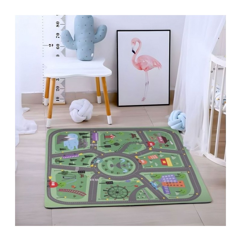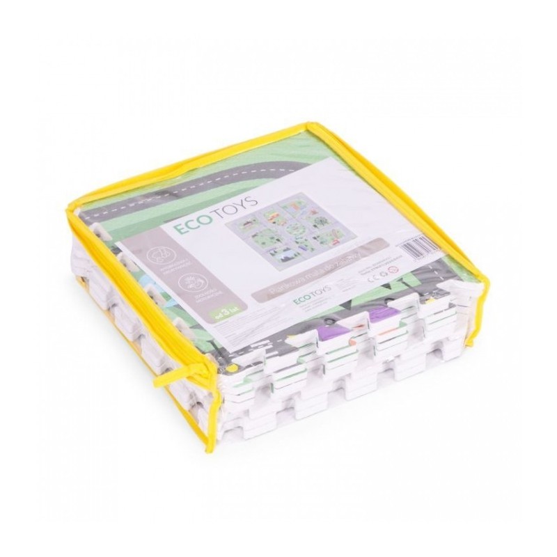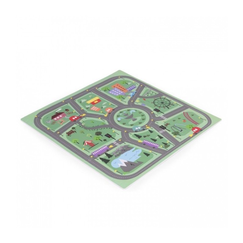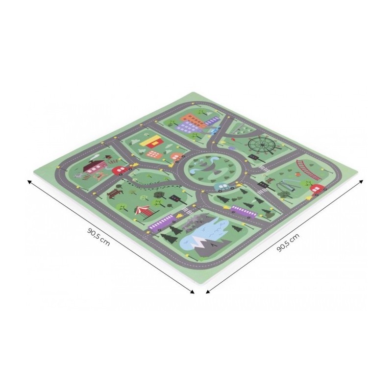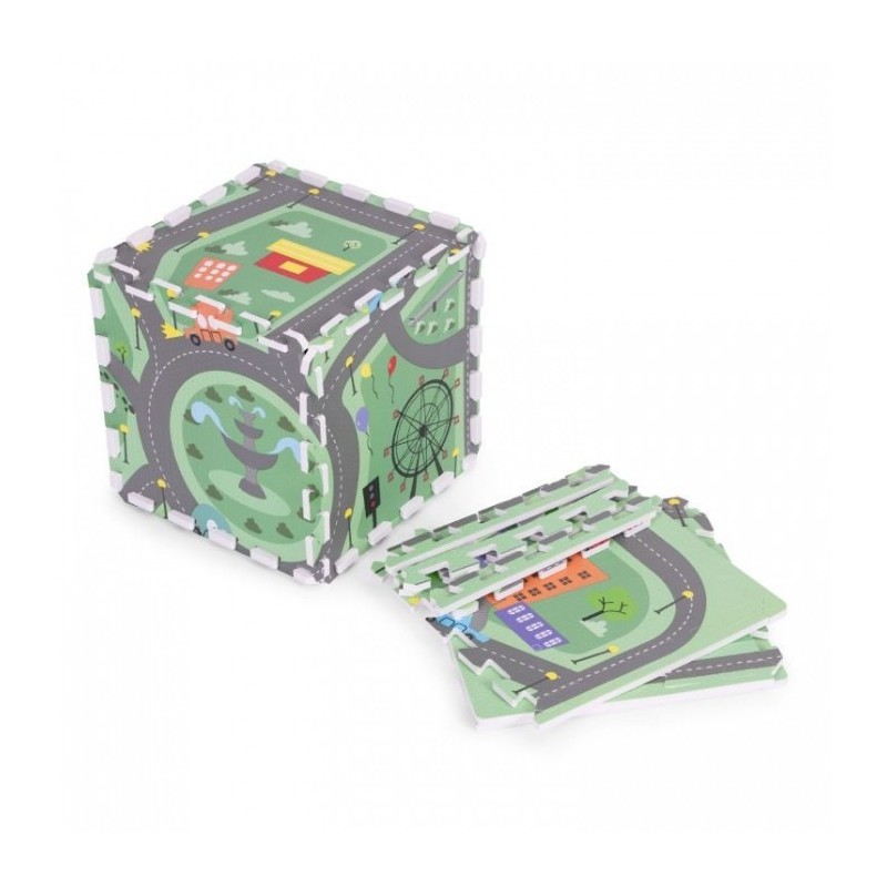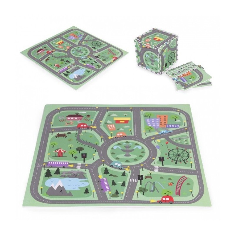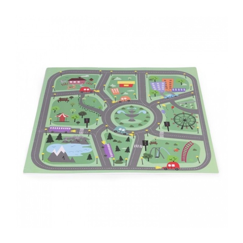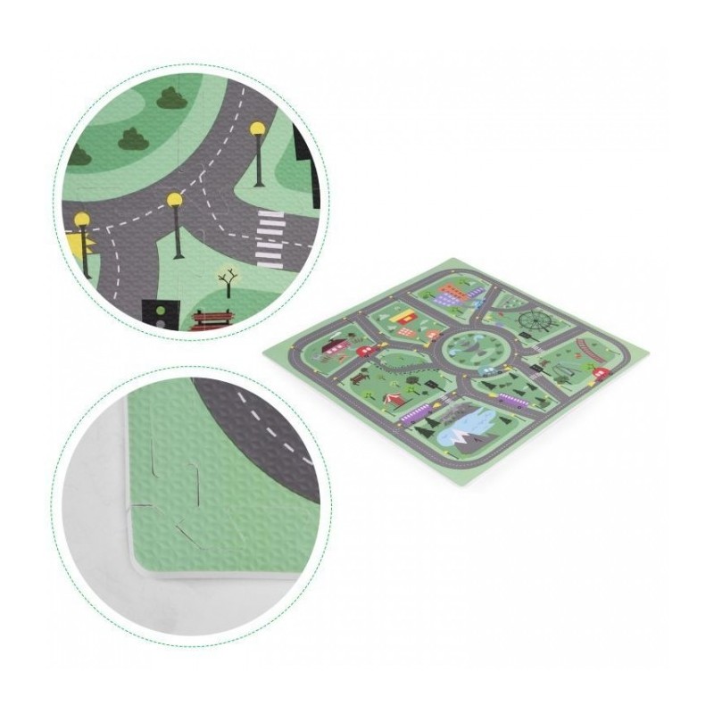 O salteluta din spuma moale EVA este perfecta pentru copiii mici care invata sa mearga. Fabricata din spuma EVA de inalta calitate, ofera o suprafata de joaca moale si sigura. Salteluta este formata din 21 de elemente care, atunci cand sunt aranjate, creeaza un oras colorat cu dimensiuni de 90.5 x 90.5 cm. Este ideala pentru invatare si joaca creativa, sustine dezvoltarea abilitatilor motorii ale copilului si ii stimuleaza imaginatia. Grosimea saltelutei este de 1 cm, deci protejeaza copilul si de frigul de la sol.