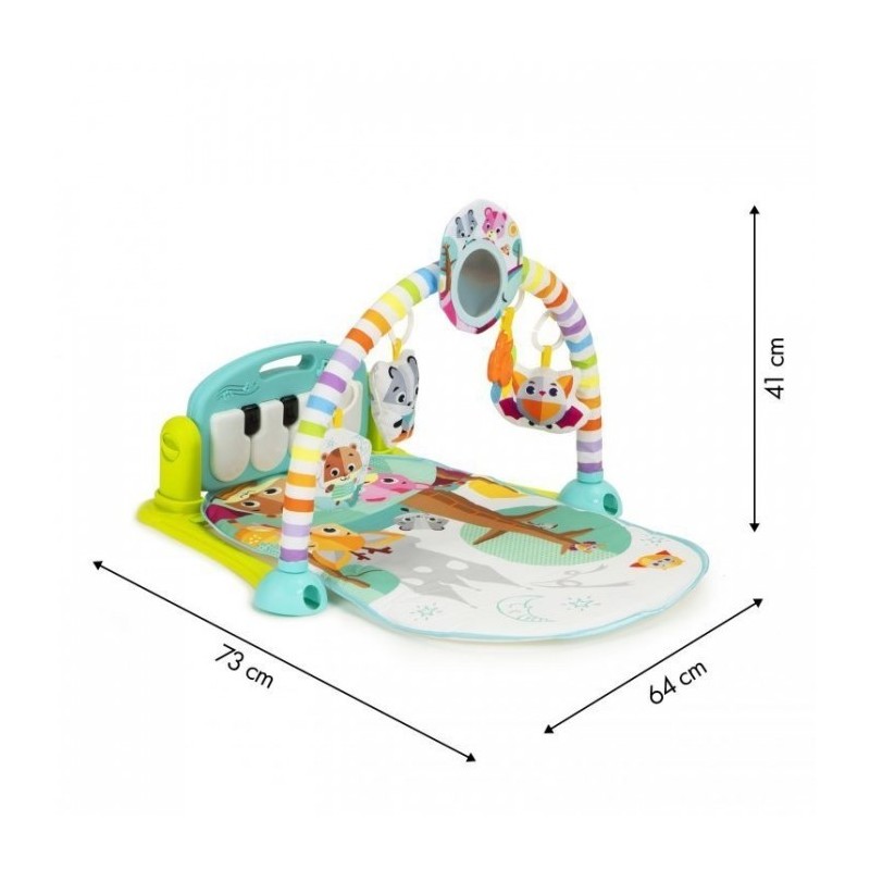 Datorita functiei de redare a sunetului, salteluta va deveni jucaria preferata a copilului tau. Pianul are melodii preprogramate activate prin apasarea clapetelor sau a butoanelor suplimentare de deasupra tastaturii.