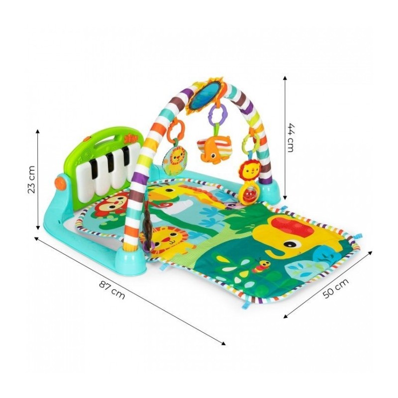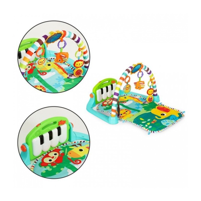 O salteluta de joaca interactiva pentru copii cu pian este o jucarie versatila si ideala pentru copii inca din primele zile de viata. Salteluta dezvolta simturile si abilitatile cognitive ale copilului. Este echipata cu un pian care reda melodii si sunete si, de asemenea, se lumineaza, atragand atentia copilului. Pianul poate fi demontat si folosit ca si jucarie separata.