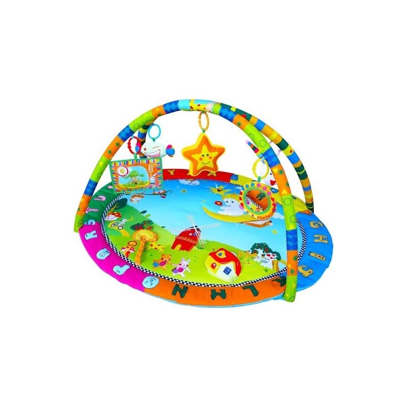 Centrul de joaca este dotat cu motive de Craciun luminoase si efecte muzicale, oglinda colorata, imprimeu reprezantand oameni veseli si o carte de colorat.