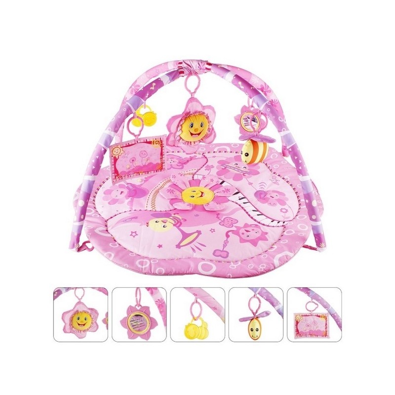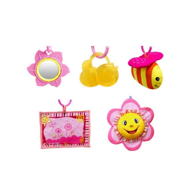 Jucariile sunt agatate pe bara de jucarii, a carei inaltime permite atingerea acestora de catre copil.