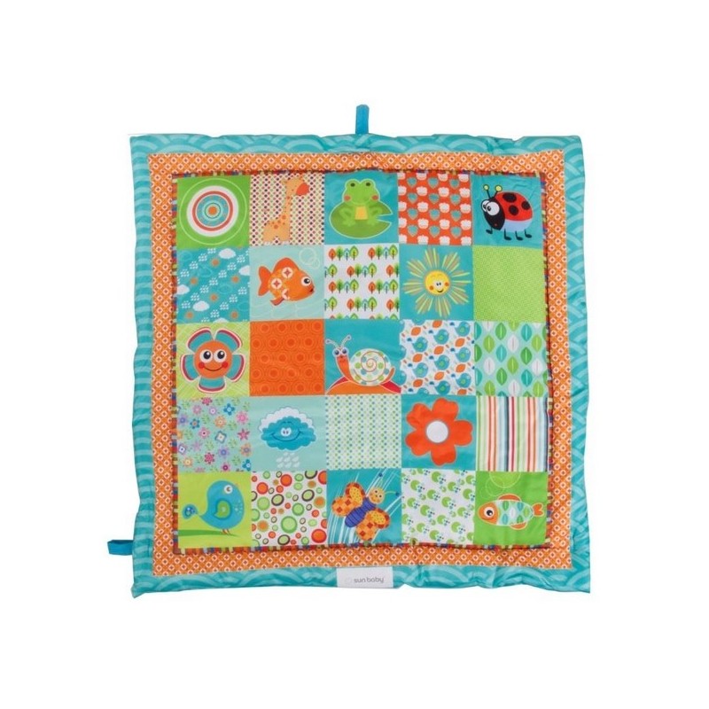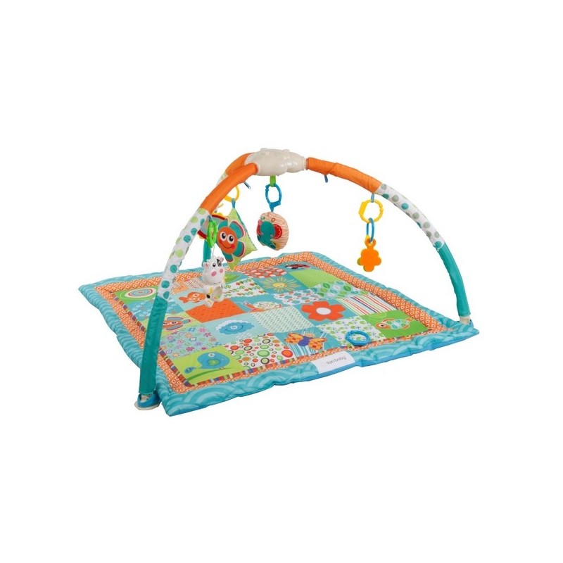 Centrul de joaca este dotat cu imprimeu saltea diverse motive colorate, efecte sonore, pandantive agatate din plus, oglinda.