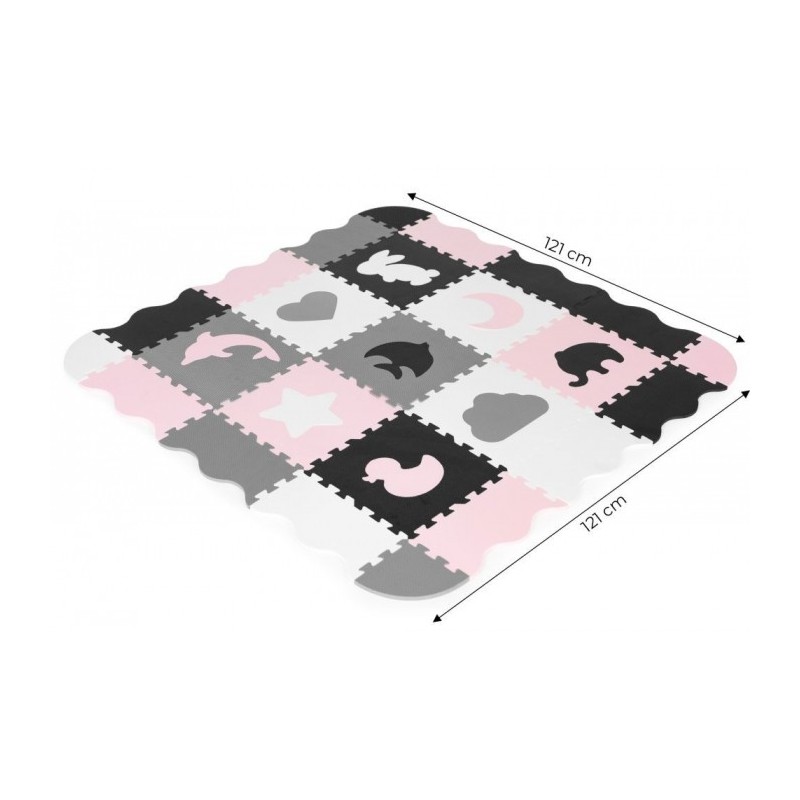O salteluta din spuma moale EVA este perfecta pentru copiii mici care invata sa mearga. O salteluta din spuma de 0.9 cm grosime realizata din puzzle-uri cu imagini cu animale va oferi izolare de la sol si va actiona, de asemenea, ca o piscina uscata care poate fi umpluta cu bile din plastic sau alte jucarii. Setul este format din 25 piese de puzzle-uri colorate care se conecteaza intre ele si pot forma chiar si un perete.