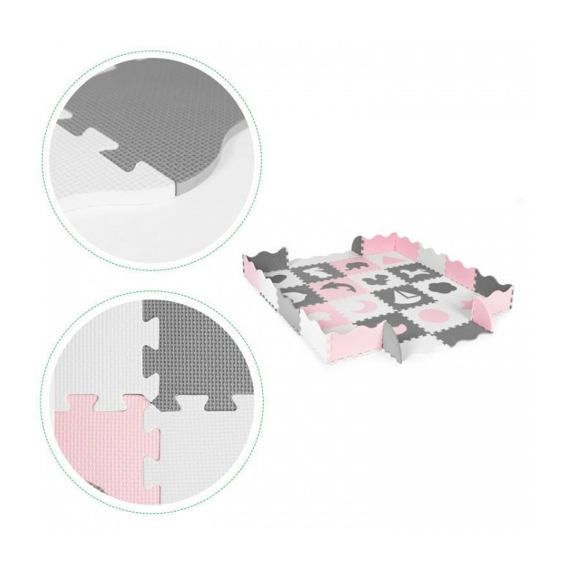 O salteluta din spuma moale EVA este perfecta pentru copiii mici care invata sa mearga. O salteluta din spuma de 0.9 cm grosime realizata din puzzle-uri cu animalute si diverse forme va oferi izolare de la sol si va actiona, de asemenea, ca o piscina uscata care poate fi umpluta cu bile din plastic sau alte jucarii. Setul este format din 36 piese de puzzle-uri colorate care se conecteaza intre ele si pot forma chiar si un perete.