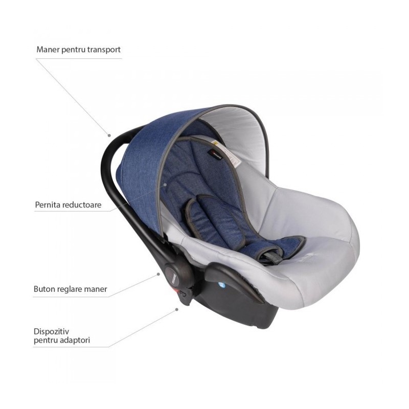 - se ataseaza pe cadrul caruciorului cu ajutorul adaptoarelor incluse