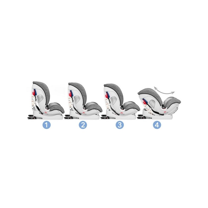 - Unghiul de inclinare ajustabil are 4 niveluri care se pot regla in functie de varsta si dimensiunea copilului