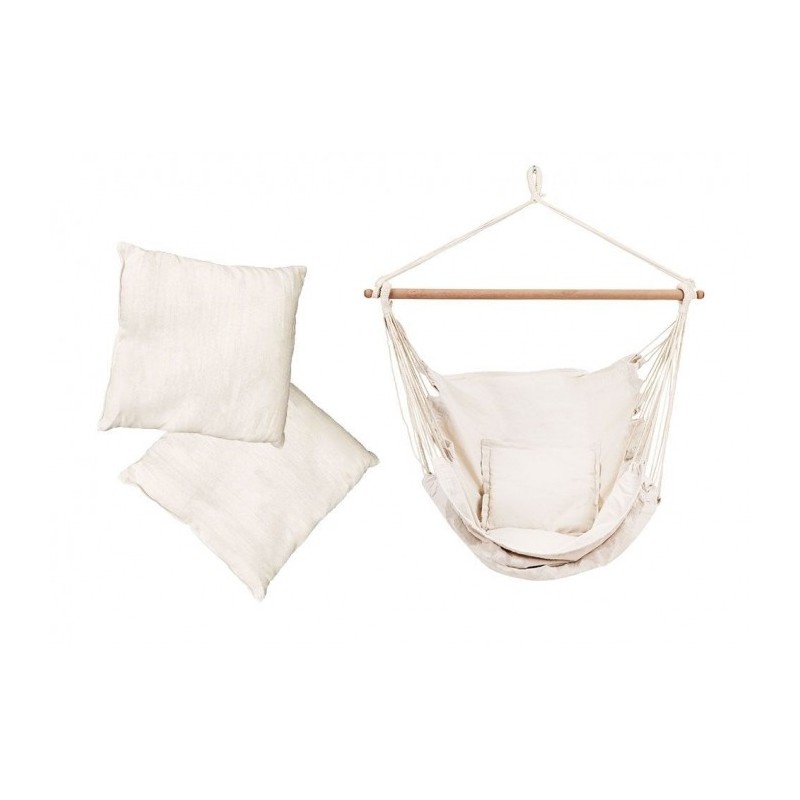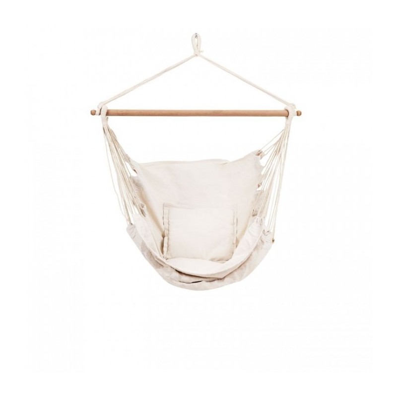 Materialul scaunului suspendat este o tesatura usoara, dar foarte durabila, din bumbac si poliester. Aceasta permite utilizarea hamacului atat in interior, cat si in exterior.
