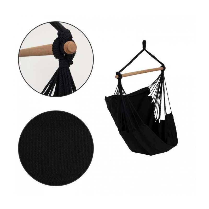 Materialul hamacului este confectionat dintr-o tesatura din poliester si bumbac, usoara dar durabila