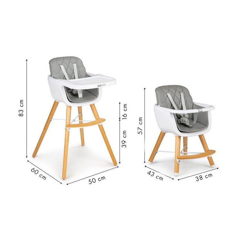 Pentru confortul si siguranta copilului, scaunul este echipat cu centuri de siguranta in 5 puncte si o blocare speciala pentru a impiedica alunecarea copiilor. Husa scaunului este confectionata din piele ecologica moale. Tava reglabila se va potrivi perfect nevoilor dvs.