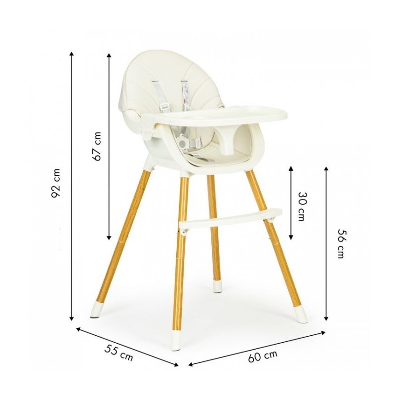 Scaunul este reglabil pe inaltime. Puteti desuruba cu usurinta picioarele si suportul pentru picioare, datorita carora scaunul inalt va fi transformat intr-un scaun inferior.