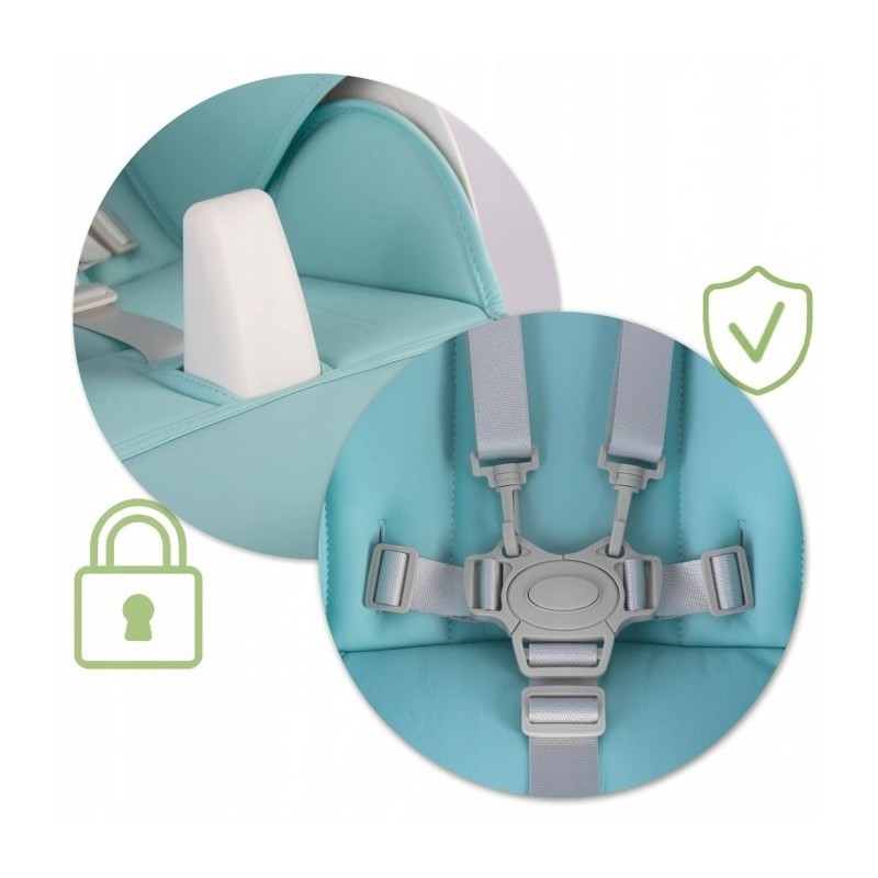 Functia de balansoar/sezlong - datorita sezutului si spatarului reglabil, puteti folosi scaunul Belo ca si balansoar, inca din primele luni din viata copilului!