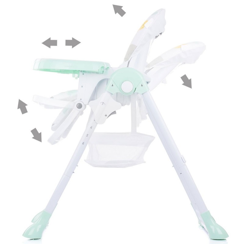 • Tavita pentru mancare poate fi reglata in spate si in fata, in functie de varsta copilului